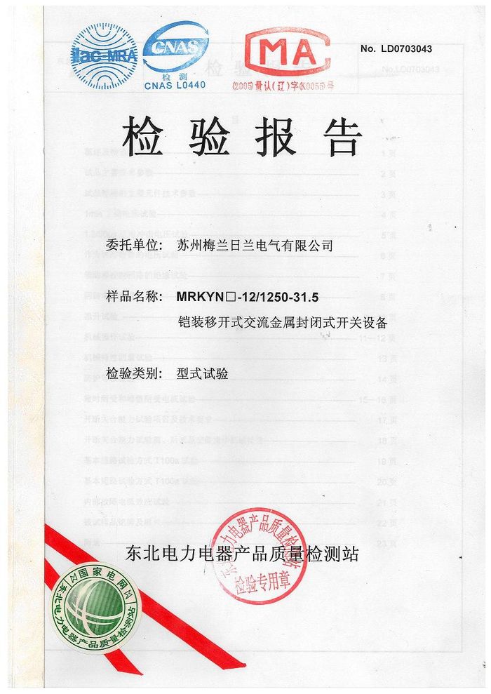 (成套)MRKYN封閉開(kāi)關(guān)(高壓柜)資質(zhì)證書(shū)