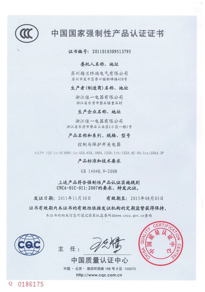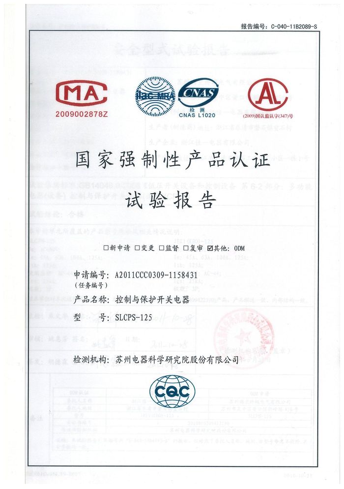 SLCPS-125控制與保護開(kāi)關(guān)資質(zhì)證書(shū)