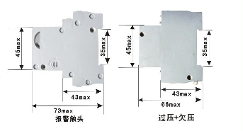 注:分勵+輔助、欠壓脫扣器安裝尺寸相同,報警觸頭與輔助觸頭安裝尺寸相同