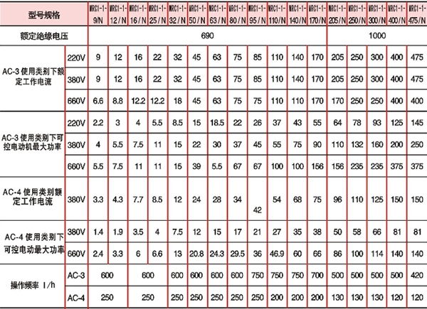 注:1.AC-3使用類(lèi)別典型用途舉例:籠型感應電動(dòng)機的起動(dòng)、運轉中分斷。