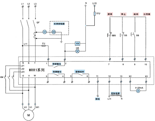 MRR1系列軟起動(dòng)器適用于A(yíng)C380V,50Hz,5.5 - 600KW各種負載的鼠籠型電動(dòng)機。