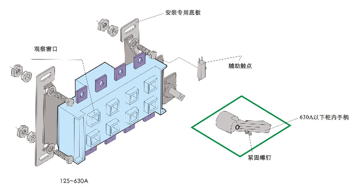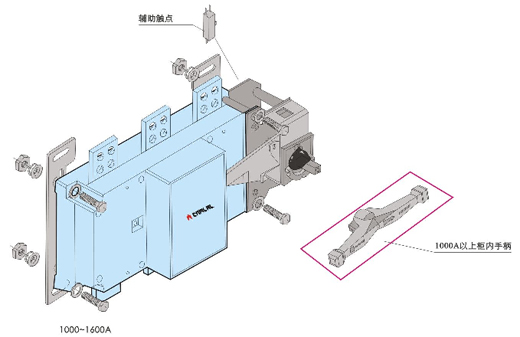 柜內操作;手柄安裝在開(kāi)關(guān)右側。