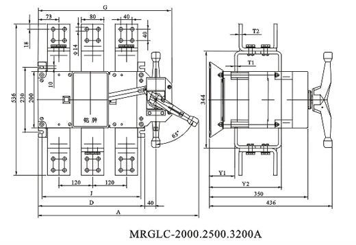 型號規格 | A | D | G | J | T1 | T2 | Y1 | Y2 |