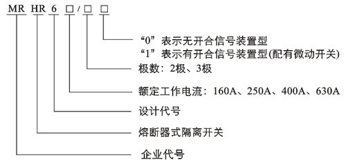 MRHR6系列熔斷器式隔離開(kāi)關(guān)(以下簡(jiǎn)稱(chēng)開(kāi)關(guān))主要用于額定電壓交流380V和660V (45~62Hz),約定發(fā)熱電流至630A的具有高短路電流的配電電路和電動(dòng)機電路中,為電源開(kāi)關(guān)、隔離開(kāi)關(guān)、應急開(kāi)關(guān)、并作電路保護之用,但一般不作為直接開(kāi)閉單臺電動(dòng)機之用。