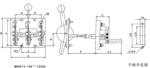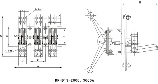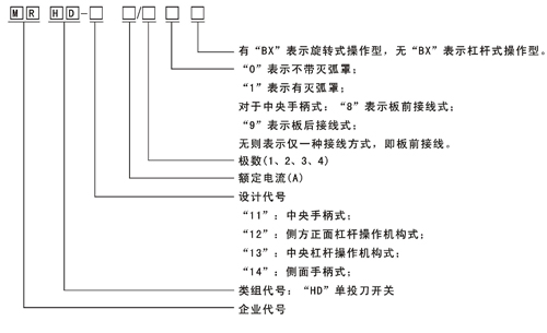 MRHD系列單投刀開(kāi)關(guān)適用于交流50Hz、額定電壓至380V、直流至220V,額定電流至3000A的成套配電裝置中,作為不頻繁地手動(dòng)接通和分斷交、直流電路或作隔離開(kāi)關(guān)用。其中: