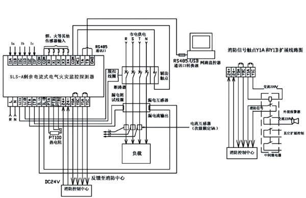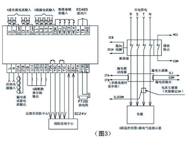 3、分體式剩余電流監控探險測器端子圖和外接線(xiàn)路圖