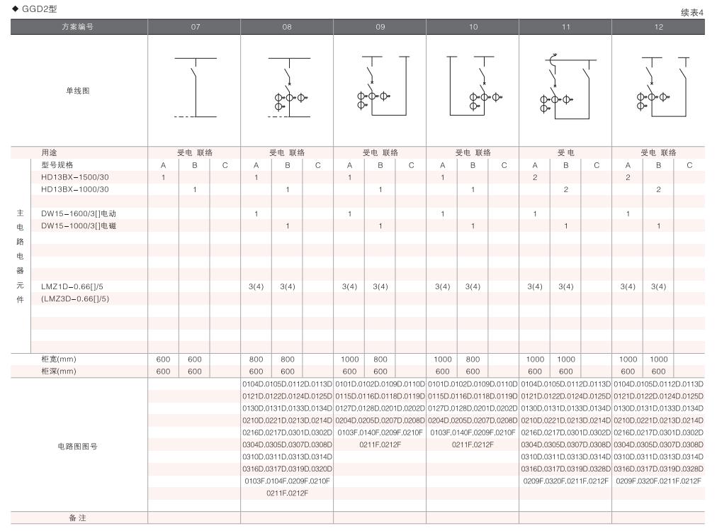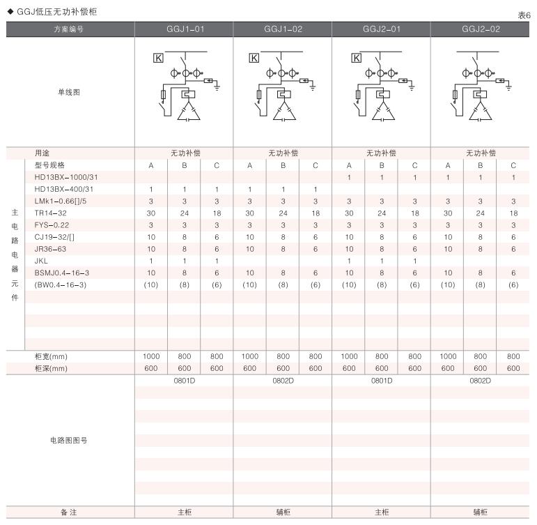 此外,為適應無(wú)功補償的需要設計了GGD電容補償柜,其主電路方案4個(gè),共12個(gè)規格。
