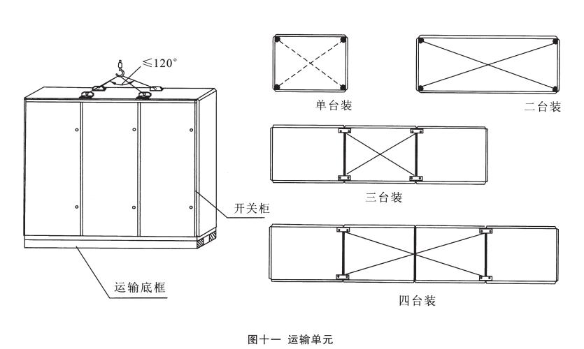 運輸單元:產(chǎn)品分四種規格的運輸單元:單臺裝、二臺裝、三臺裝和四臺裝。但總長(cháng)度不得超過(guò)3m,見(jiàn)圖十一。