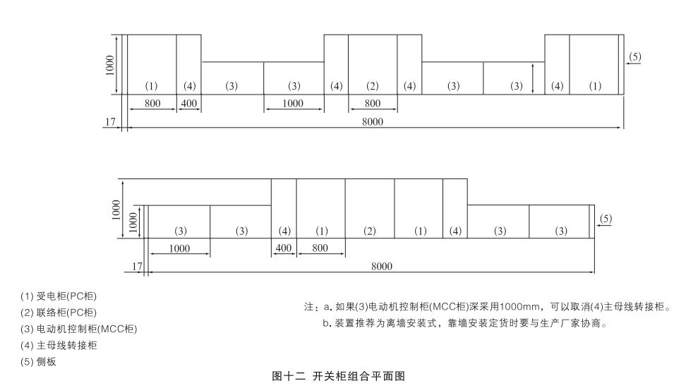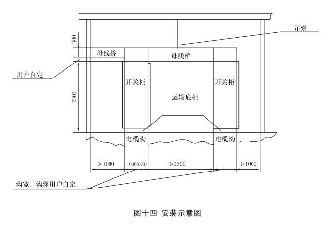 安裝:開(kāi)關(guān)柜就位。找準位置,按圖十一所示進(jìn)行焊接,焊接節柜和焊長(cháng)由用戶(hù)確定,產(chǎn)品安裝與配電室的相對位置參考圖十二,其中吊索是否安裝由用戶(hù)確定,制造商提供的原則是:當母線(xiàn)橋的長(cháng)度大于3米時(shí)應考慮安裝吊索。但是,當母線(xiàn)橋的電流大于或等于2500A時(shí),其長(cháng)度為2.5米時(shí)也應安裝吊索。